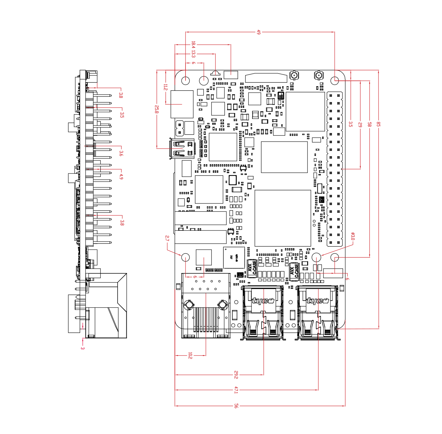 | Tag Connect | 1 x JTAG, 1 x Tag Connect for PMIC NVM Programming |