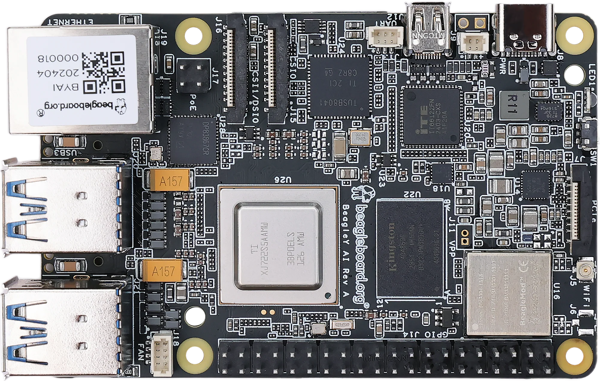 | Wi-Fi | BeagleBoard BM3301, 802.11ax Wi-Fi |