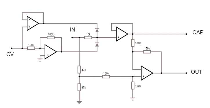 Me and Davey Graham were working on wavefolders at the same time independently. A few days after I posted this schematic for a simple wavefolder, Davey has extended upon it: