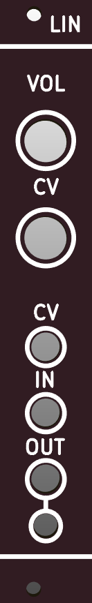 LIN is a 4hp Line Input module allowing you to take a line level signal from eg. a laptop, mp3 player, mobile phone etc. and boost it to Eurorack level. The volume is controlled by a VCA, which allows you to control the volume, or chop up the incoming audio signal. You can also distort existing eurorack signal by boosting the signal until it clips.