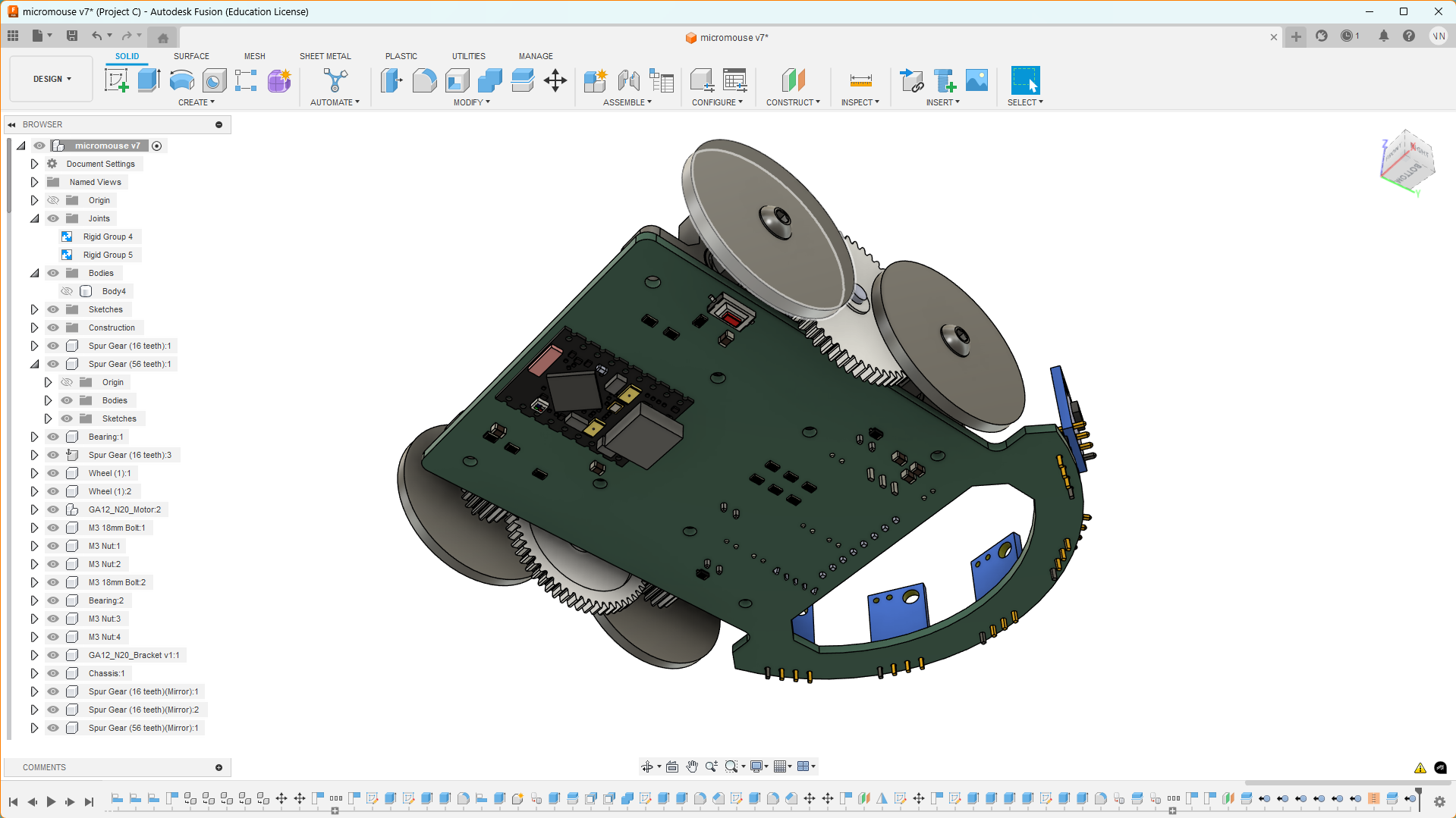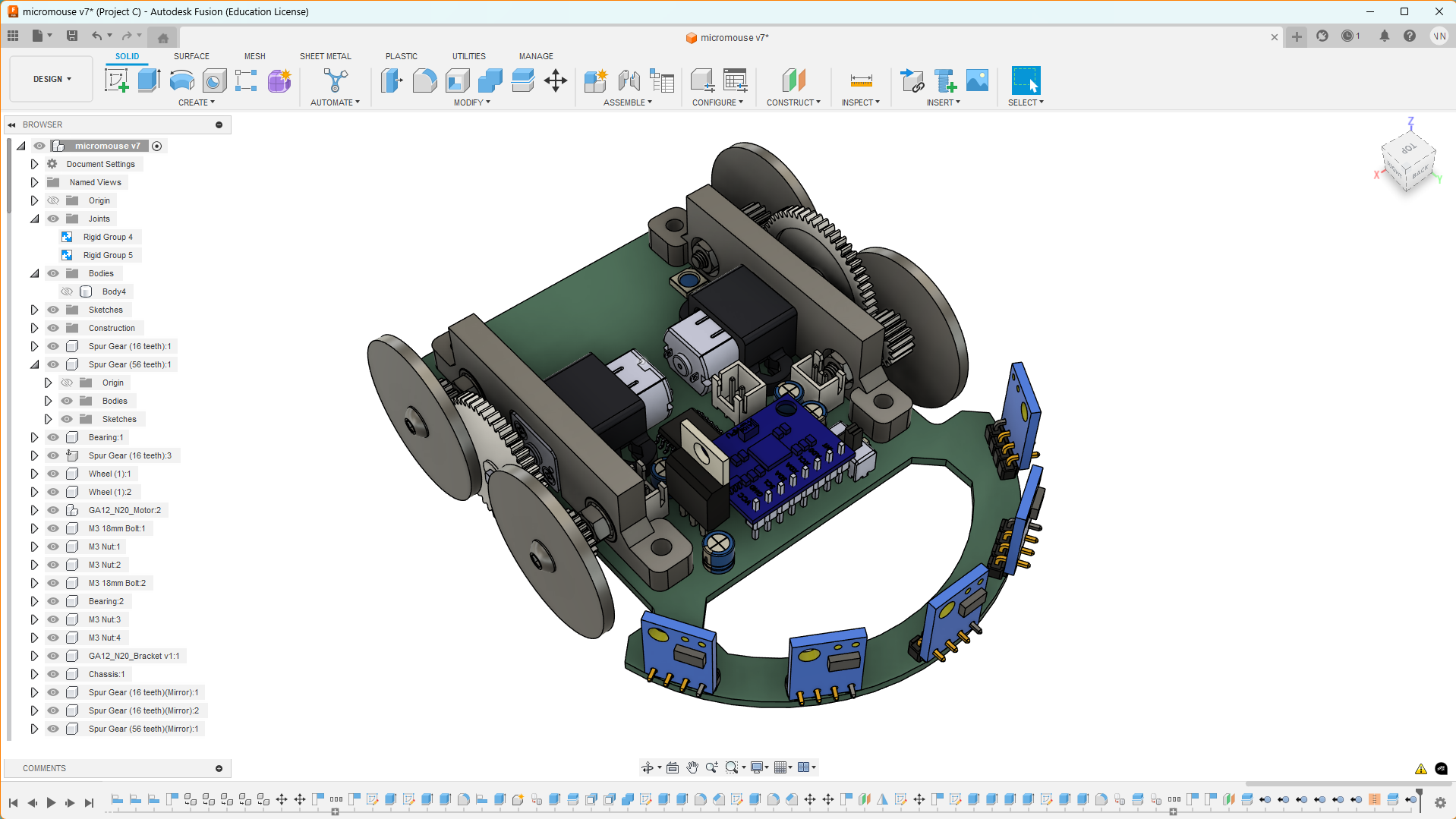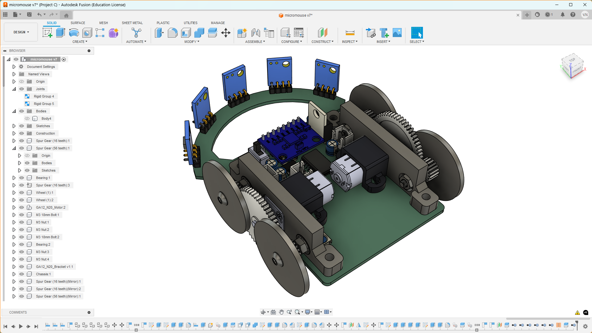 - GA12 N20 Motor: Motor with a step-up gearbox of 56:16 for movement.