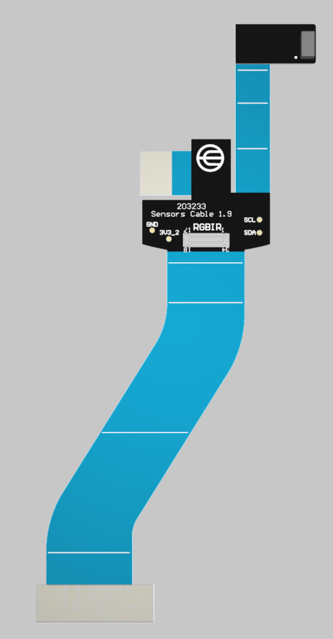 During assembly, this FPC is folded over itself to position the 1D TOD, 2D TOF and thermal cameras adjacent to the center section and face outwards (the correct folded orientation can be found in the SensorsCable_Layout.PDF which includes a 3D rendering).
